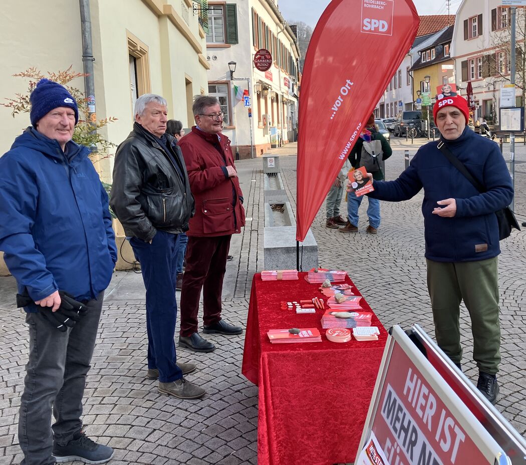 Es war ein neues Format, das der SPD-Ortsverein Rohrbach im Rahmen des Wahlkampfes für die vorgezogene Bundestagswahl am 23. Februar 2025 kreiert hat – und es war erfolgreich. Auch das Wetter spielte mit, so dass der „Punsch mit Tim“ komplett im Freien vor dem Alten Rathaus in Rohrbach stattfinden konnte. Viele Menschen nutzten die Gelegenheit, um mit dem SPD-Kandidaten für den Wahlkreis 274 (Heidelberg-Weinheim) wichtige Themen zu diskutieren.